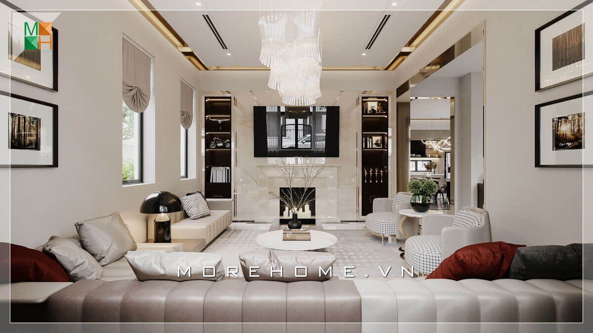Thiết kế nội thất phòng khách biệt thự phong cách tân cổ điển sang trọng và đẳng cấp