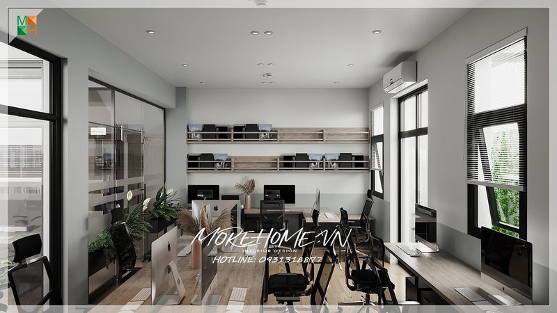 Cửa kính cường lực có tác dụng giảm tiếng ồn giúp nhân viên tập trung làm việc.