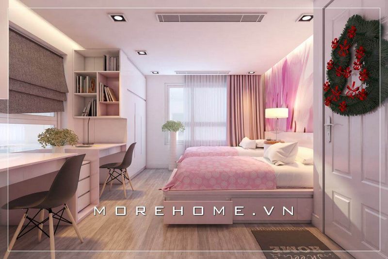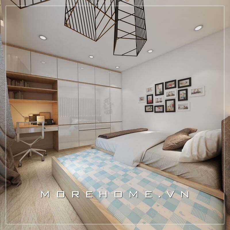 Hình ảnh phòng ngủ có góc làm việc do Morehome thi công lắp đặt