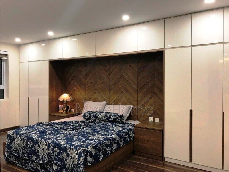 Hình ảnh thi công nội thất phòng ngủ hiện đại gỗ công nghiệp tại căn hộ chung cư Thăng Long Number One Hà Nội do Morehome là đơn vị thi công trực tiếp