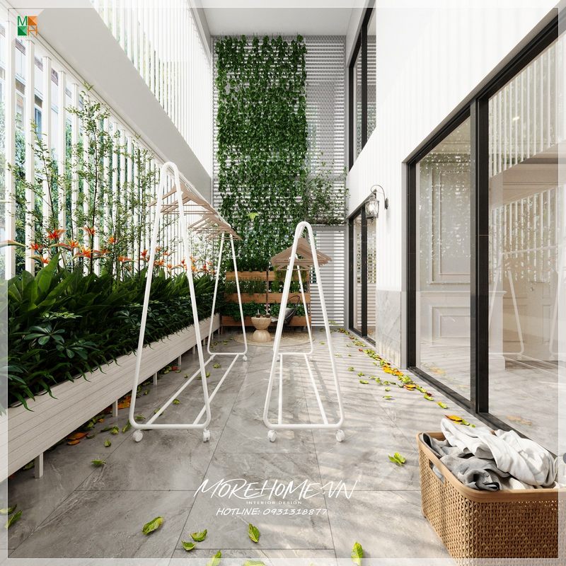 Thiết kế dàn cây xanh, hoa đem đến một không gian mát mẻ tươi mới tạo cảm giác con người và thiên nhiên hòa là một