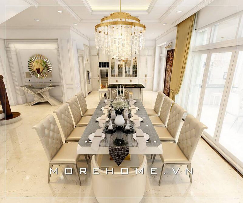 Mẫu bàn ăn cao cấp, sang trọng và tiện nghi cho phòng ăn biệt thự